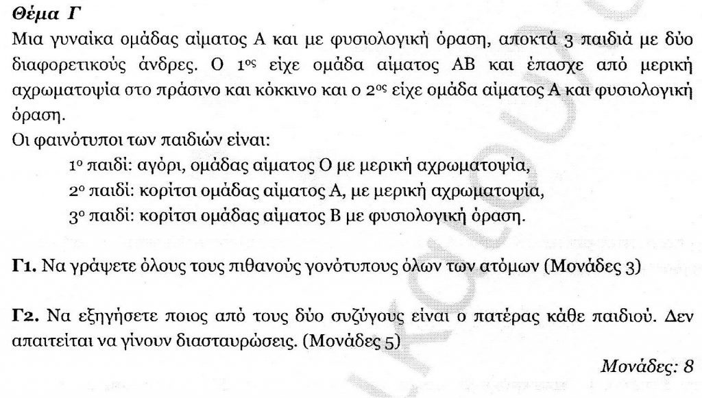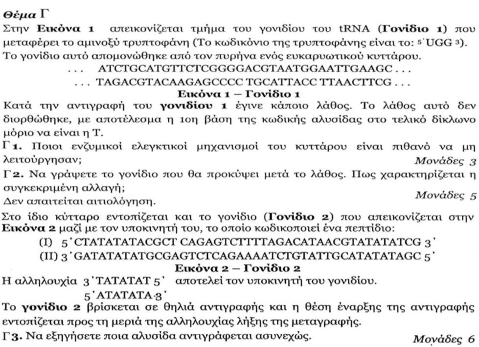 Το θέμα Γ3 το οποίο είναι «αντίστοιχο» με το θέμα Δ3, β της Βιολογίας Προσανατολισμού Θετικών Σπουδών στις Πανελλαδικές 2017.
