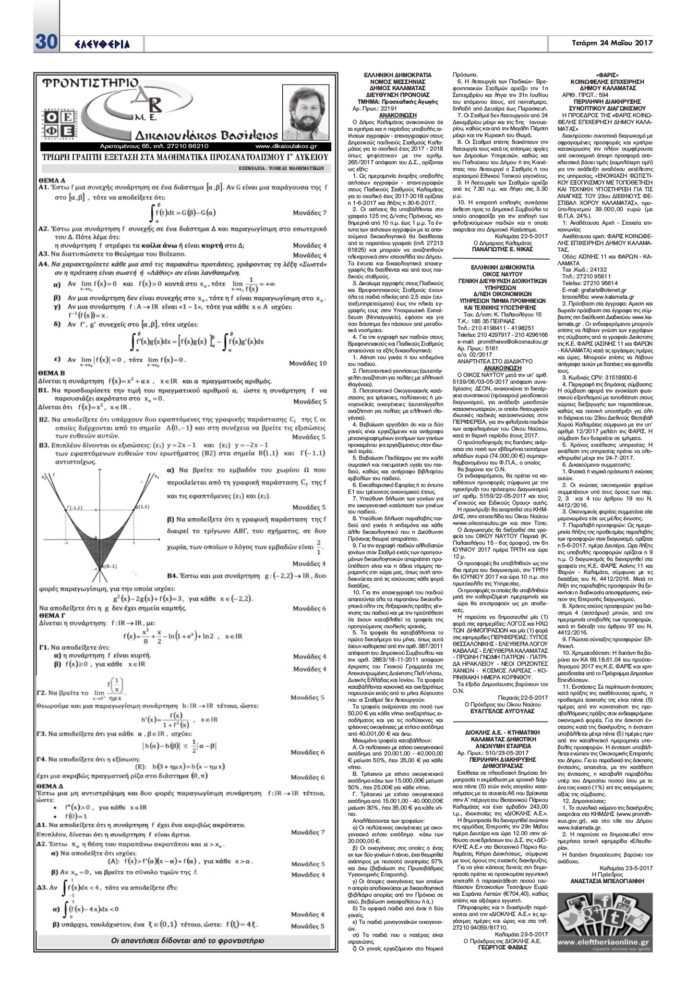 Δημοσιευμένα Θέματα κοντά στο πνεύμα των Πανελλαδικών 2017