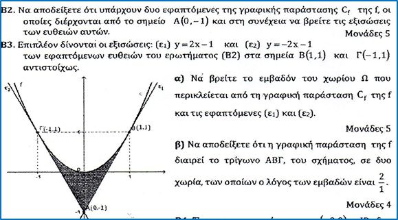 Τα θέματα Β2 και Β3 τα ζητήματα των οποίων είναι «αντίστοιχα» με τα θέματα Γ1 και Γ2 των Μαθηματικών Προσανατολισμού Θετικών Σπουδών & Σπουδών Οικονομίας & Πληρ/κής στις Πανελλαδικές 2017