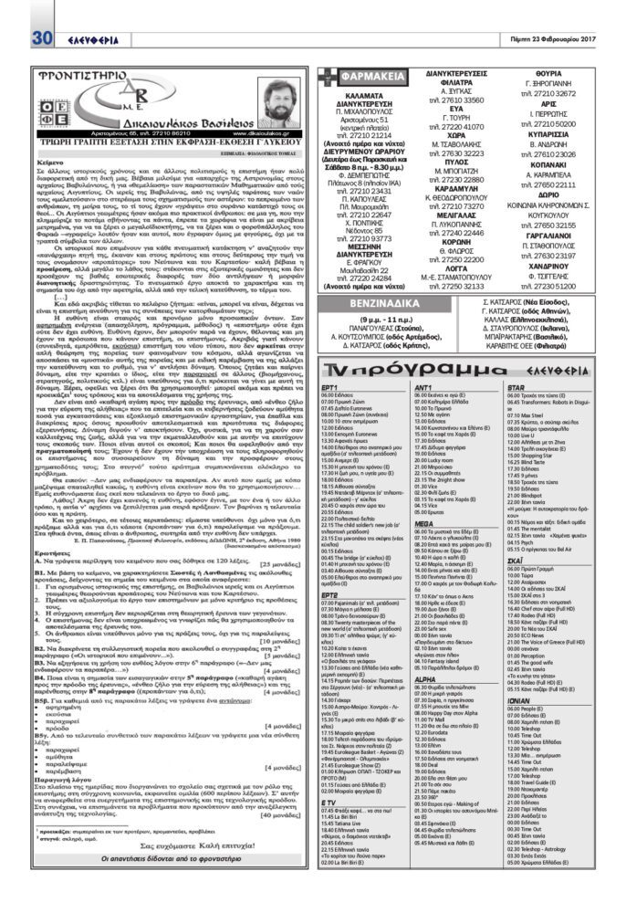 Επίσης τις 12 Απριλίου 2017 το Φροντιστήριο «Δικαιουλάκος Βασίλειος» δημοσίευσε στην εφημερίδα «Ελευθερία»: