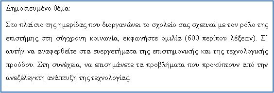 θέμα Έκθεσης- Έκφρασης Γ΄Λυκείου για τα ΕΥΕΡΓΕΤΗΜΑΤΑ ΤΗΣ ΕΠΙΣΤΗΜΟΝΙΚΗΣ ΠΡΟΟΔΟΥ και μάλιστα με τη μορφή ΟΜΙΛΙΑΣ που ζητήθηκε σήμερα στο εξεταζόμενο μάθημα της Νεοελληνικής Γλώσσας 2017